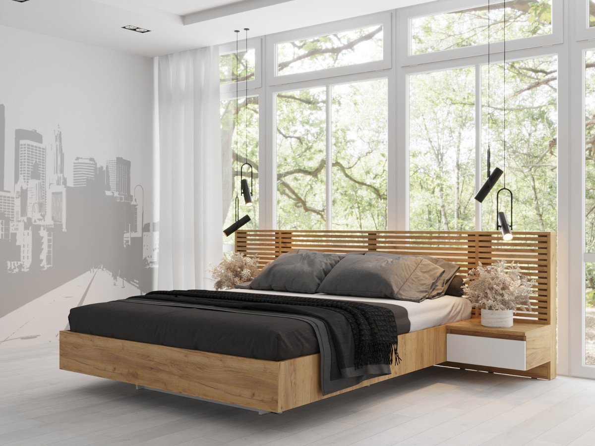 Важно! Тумба в количестве ДВУХ ЕДИНИЦ входит в состав спального комплекта и НЕ является самостоятельным элементом, имеет универсаньную сборку, при сборке крепится к Щитку и царге БОСТОН Кровати КР-001 с двух сторон.