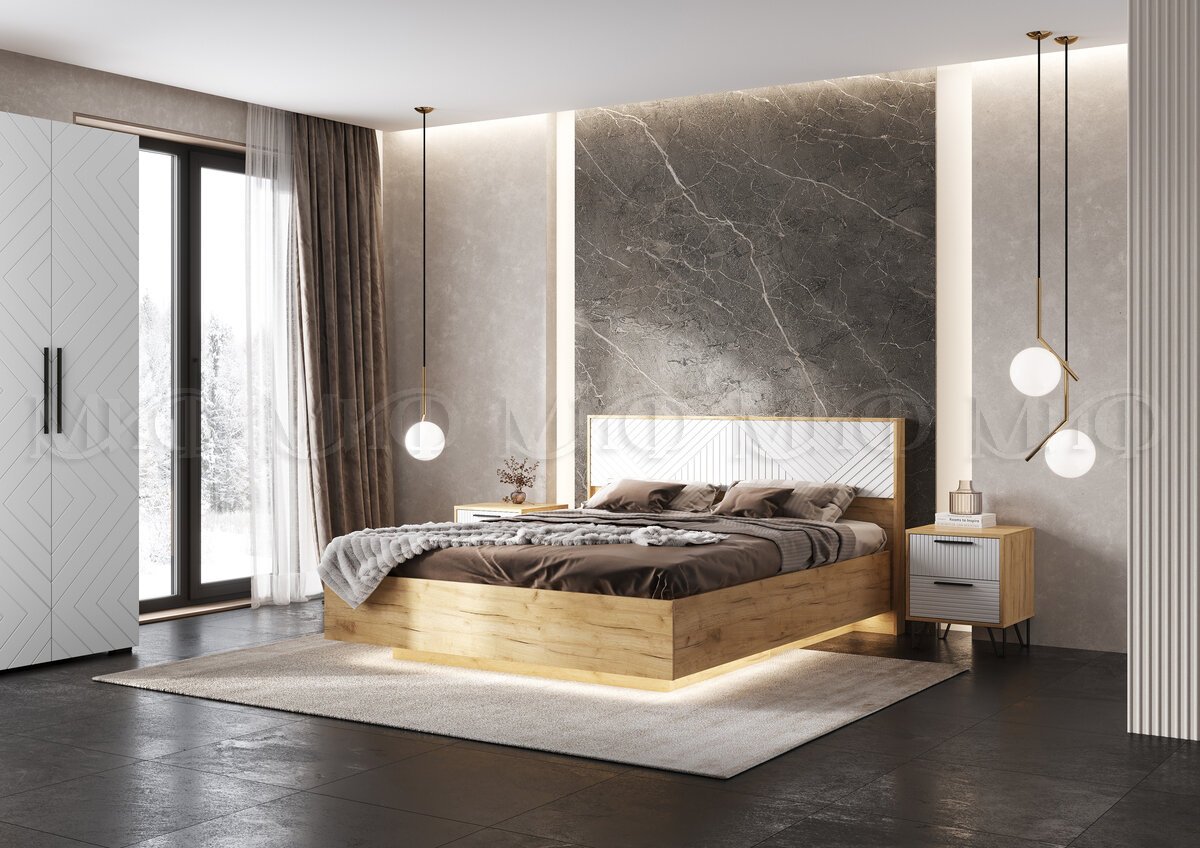 Цена за комплект: Кровать парящая 1,6м (ортопед дерево), Шкаф 2-х створчатый, Тумбы прикроватные