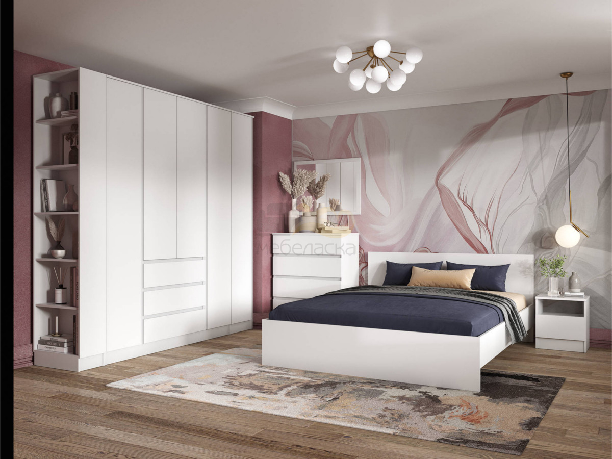 Цена за комплект: МСКР-1 Кровать 1,6м, МСЗ-20 Зеркало, МСК-20 Комод, МСП-20 Пенал, МСТ-20 Тумба прикроватная, МСШ-22 Шкаф торцевой, МСШ-25 Шкаф