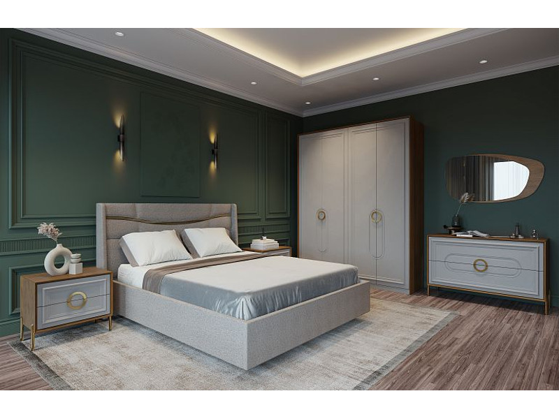 Цена за комплект: Комод, Зеркало, Шкаф 4-дверный, Тумбочка прикроватная (2шт), (Elon 31) Кровать 1600 с ПМ , Ортопедическое основание 1600