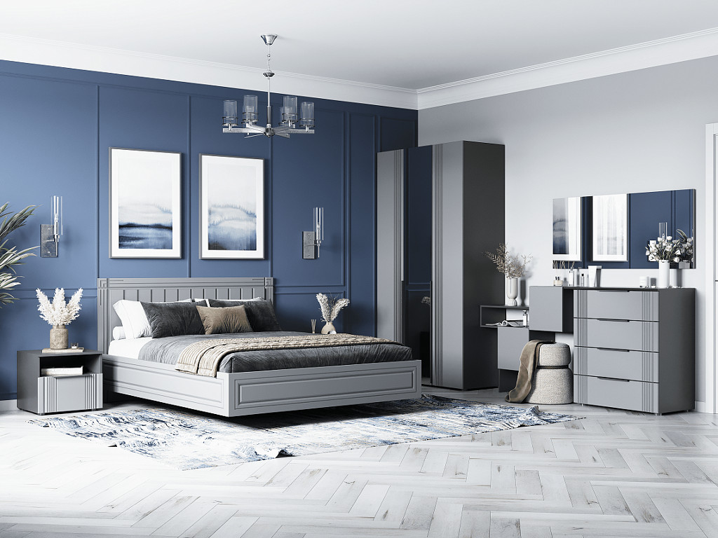 Цена за комплект: Зеркало , Комод с 4 ящиками, Полка универсальная 2-створчатая, Шкаф 3-створчатый с зеркалом, Тумба прикроватная, Кровать 1,4 Настил 1400