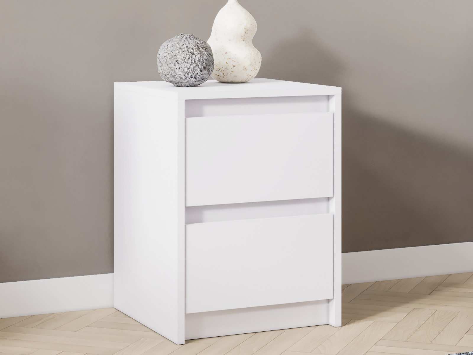 Лицевая фурнитура отсутствует. Ящики открываются с помощью захвата рукой.