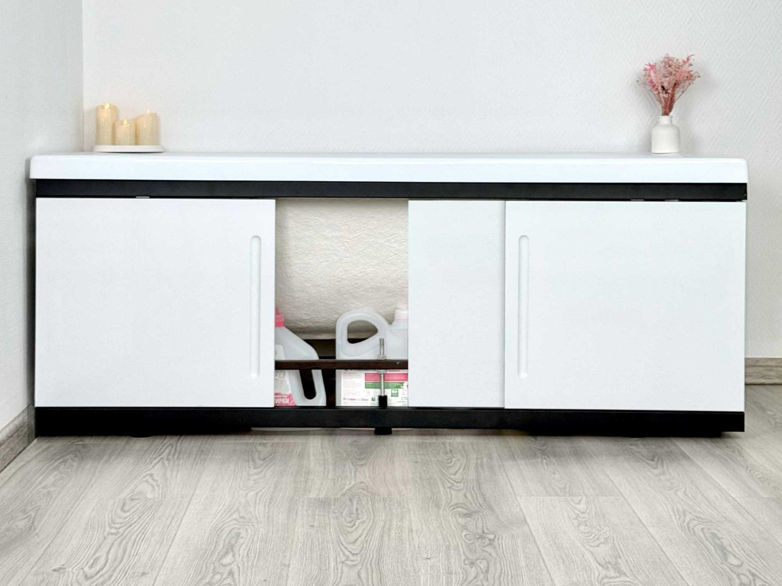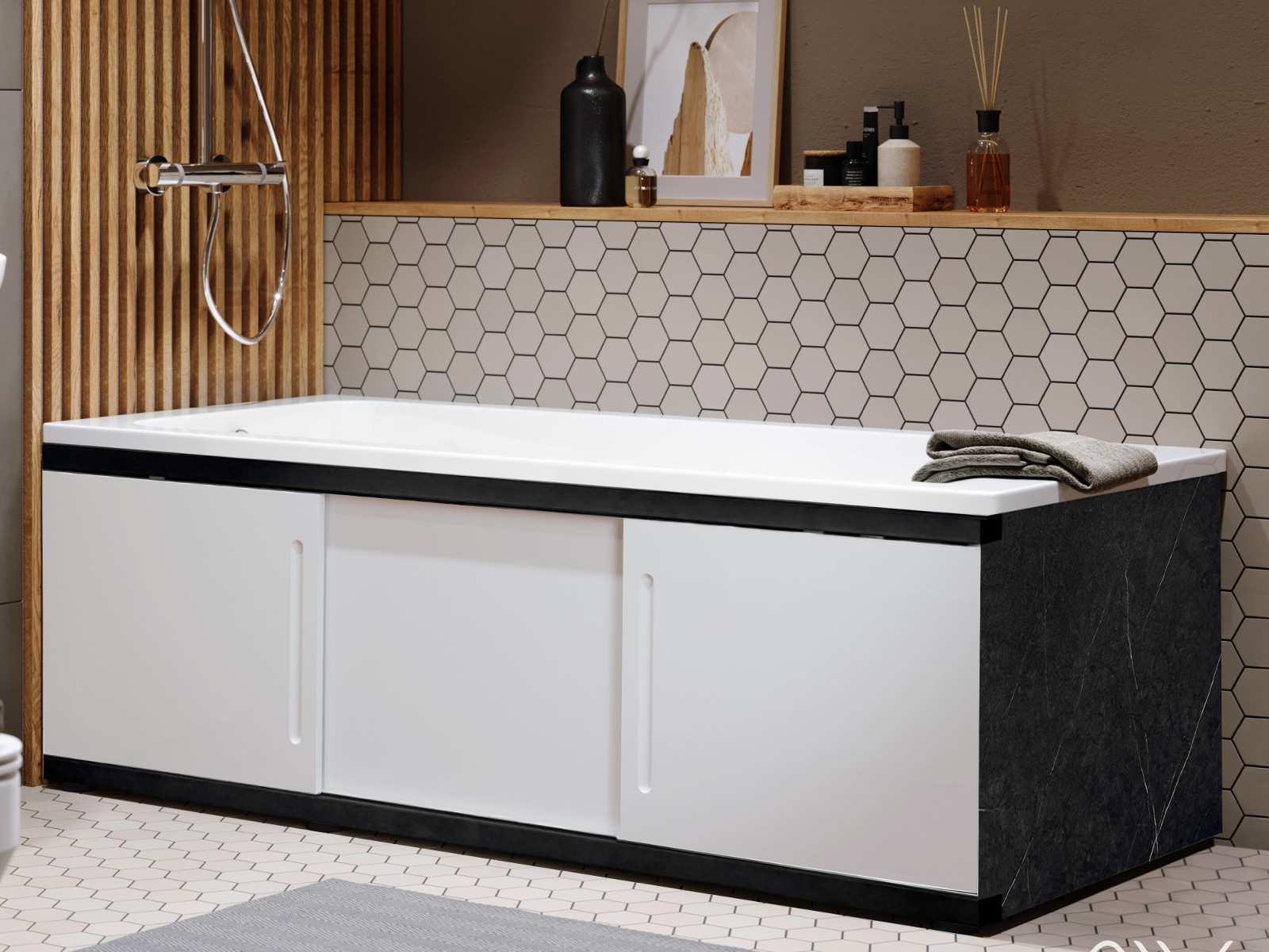 - Экран под ванну МДФ Alt Black 1500 мм белый