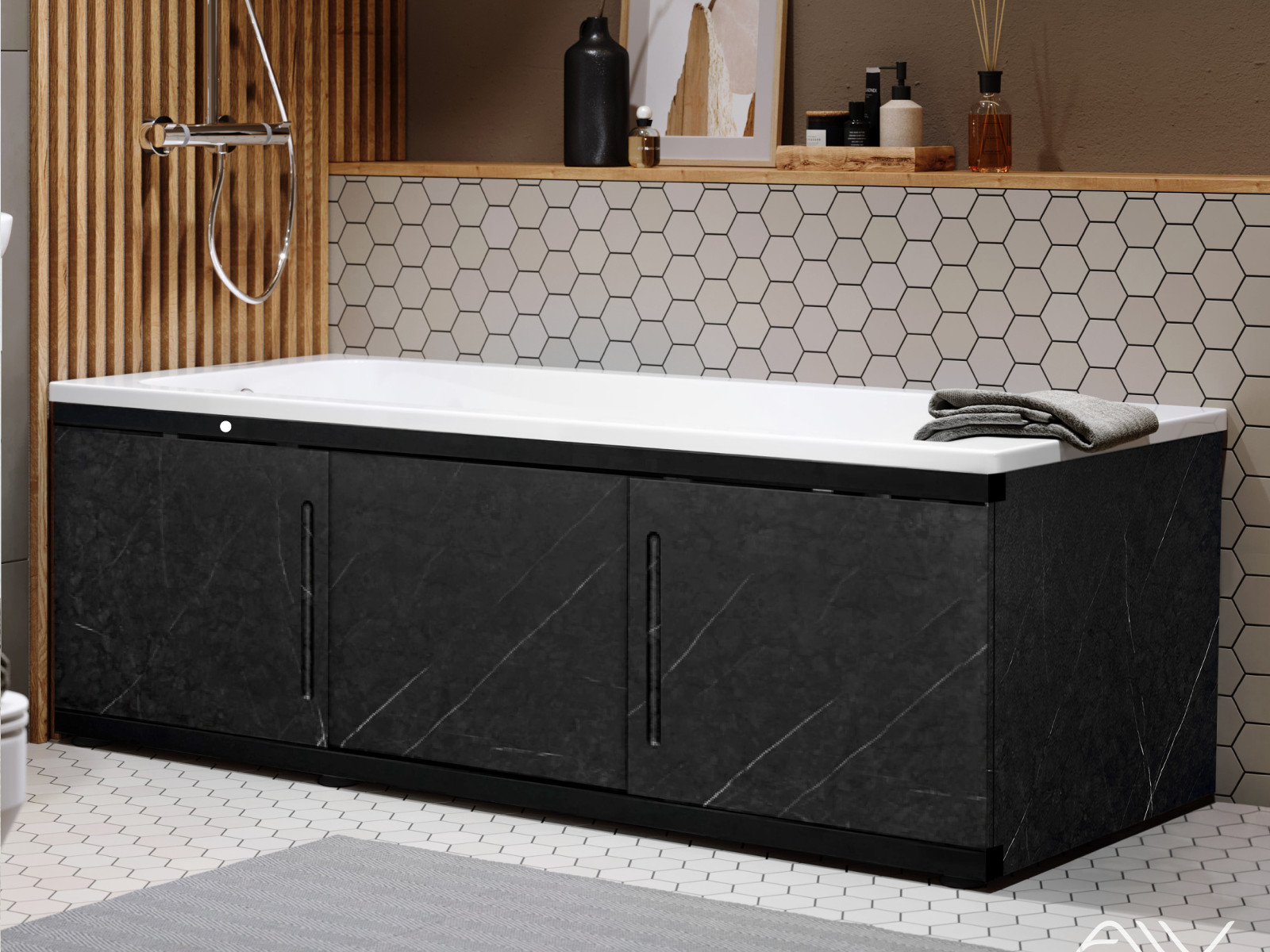 - Экран под ванну МДФ Alt Black 1700 мм черный мрамор