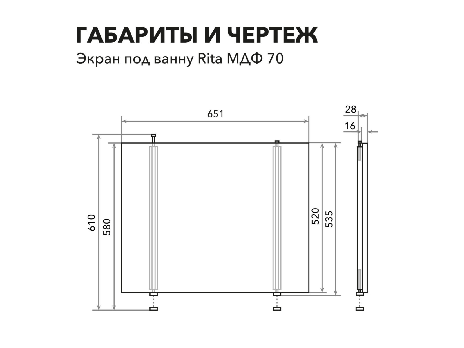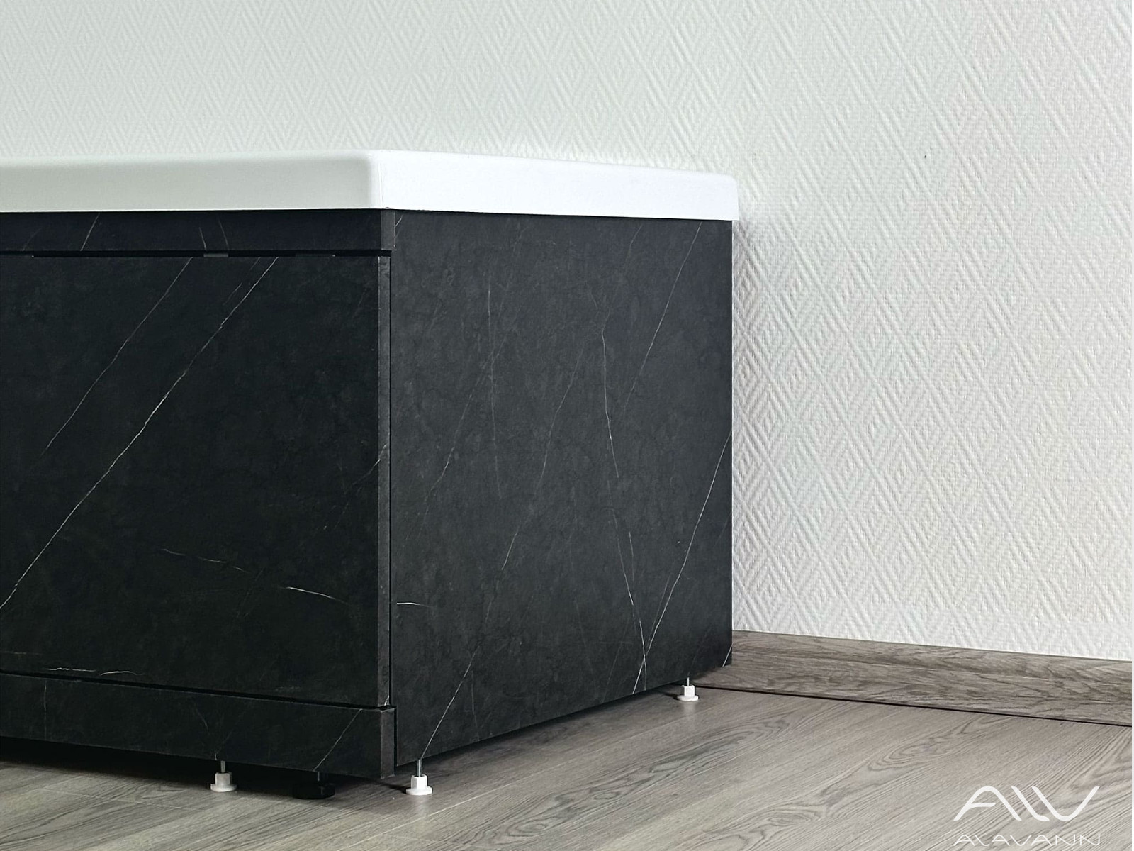 - Экран под ванну МДФ Rita 0,7 торцевой черный мрамор