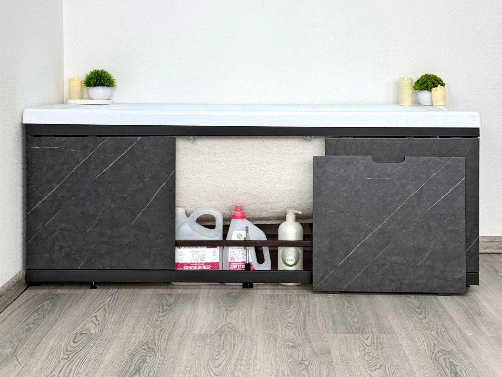 - Экран под ванну МДФ Rita Black 1600 мм черный мрамор
