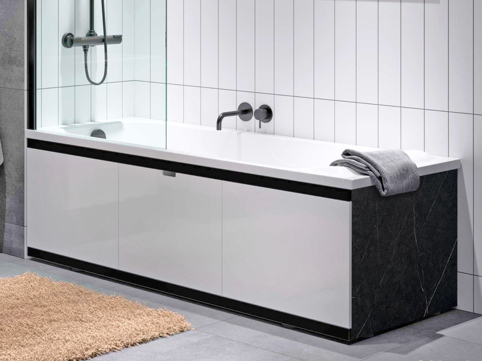 - Экран под ванну МДФ Rita Black 1700 мм белый