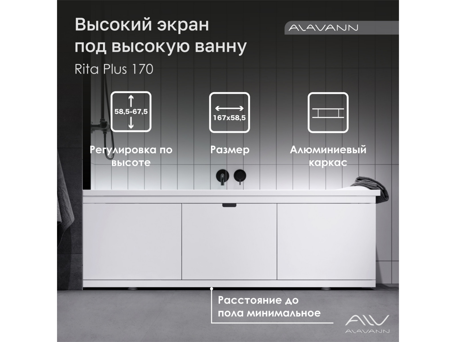 - Экран под ванну МДФ Rita Plus 1700 мм