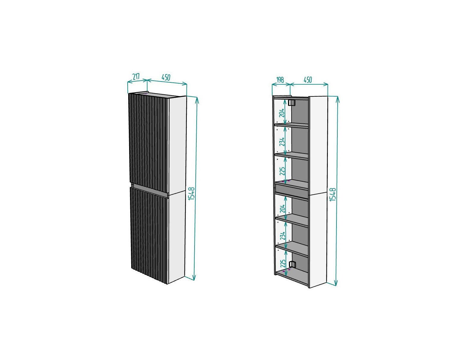Размер ВхШхГ: 1548х450х217 мм
