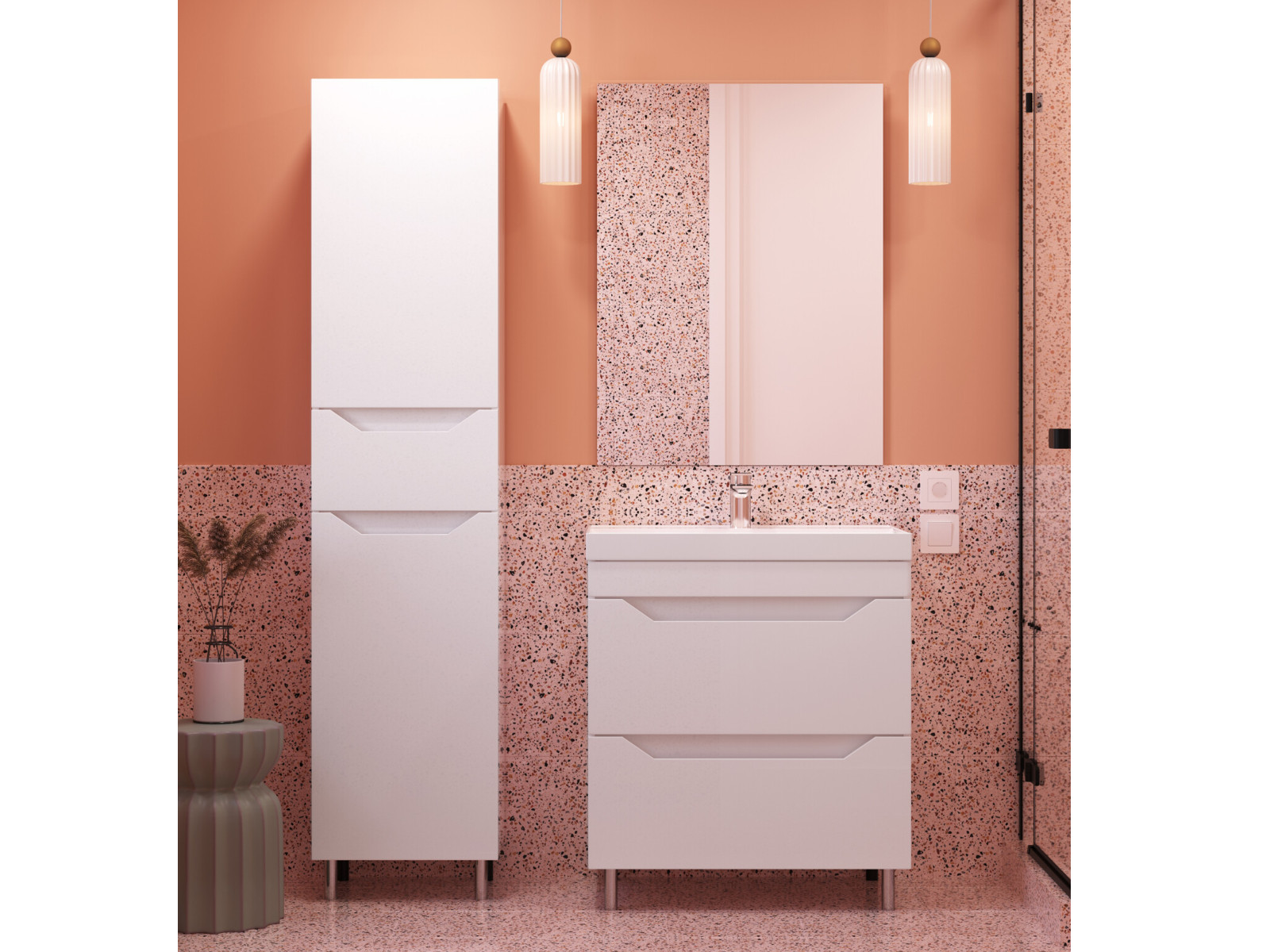 - Тумба "Сохо" 80 напольная 2 ящика белый + ум Слим 80 или Комфорт 80
