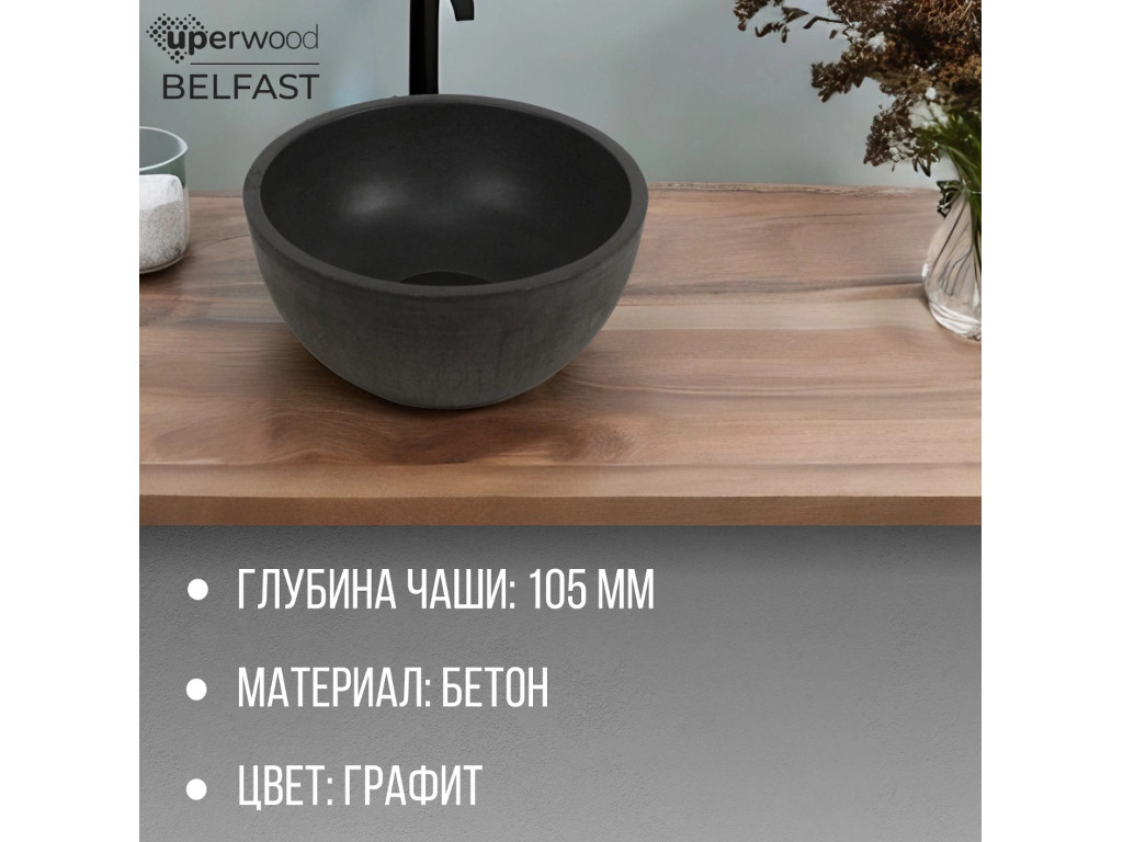 Раковина Uperwood Belfast бетонная графит