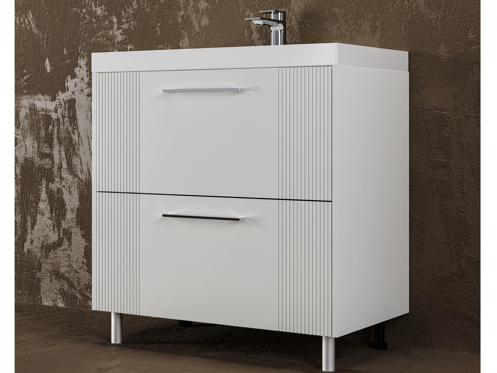 - Тумба Альба 80 напольная 2 ящика Слим 80 суфле