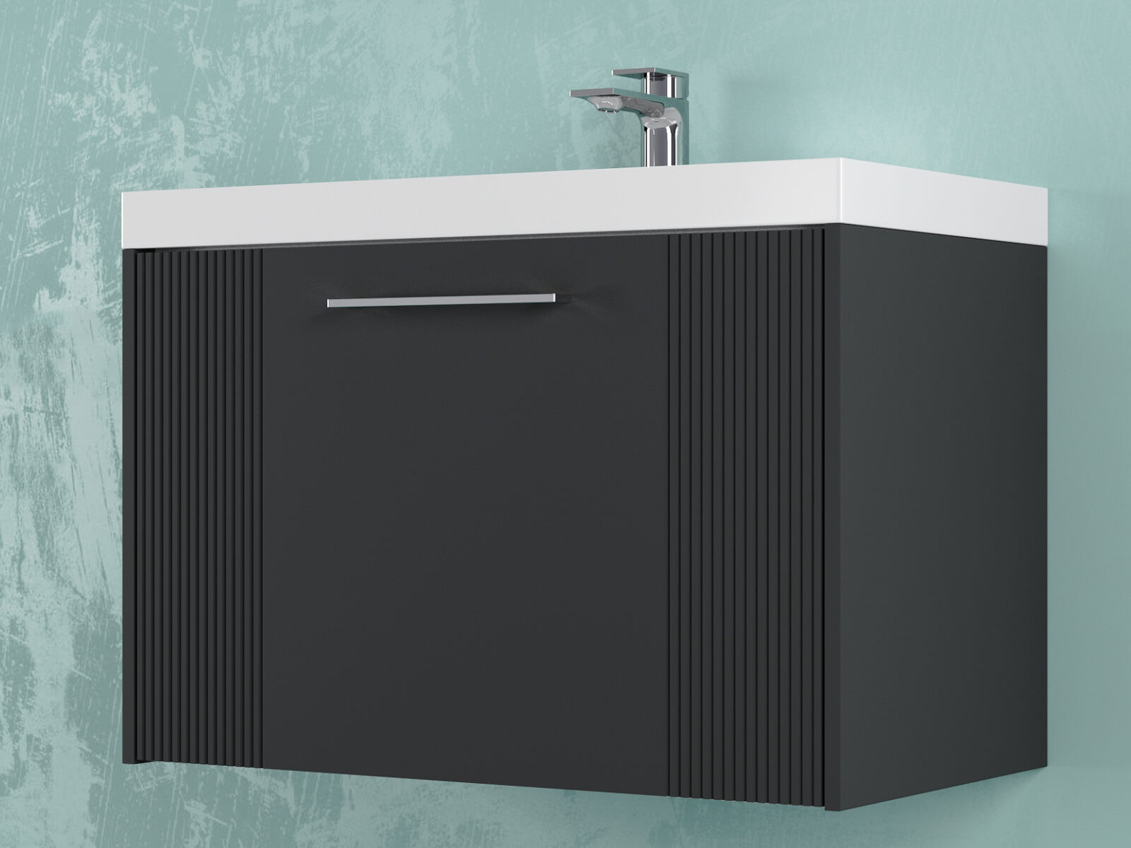 Тумба Альба 80 подвесная 1 ящик раковина Слим 80 антрацит