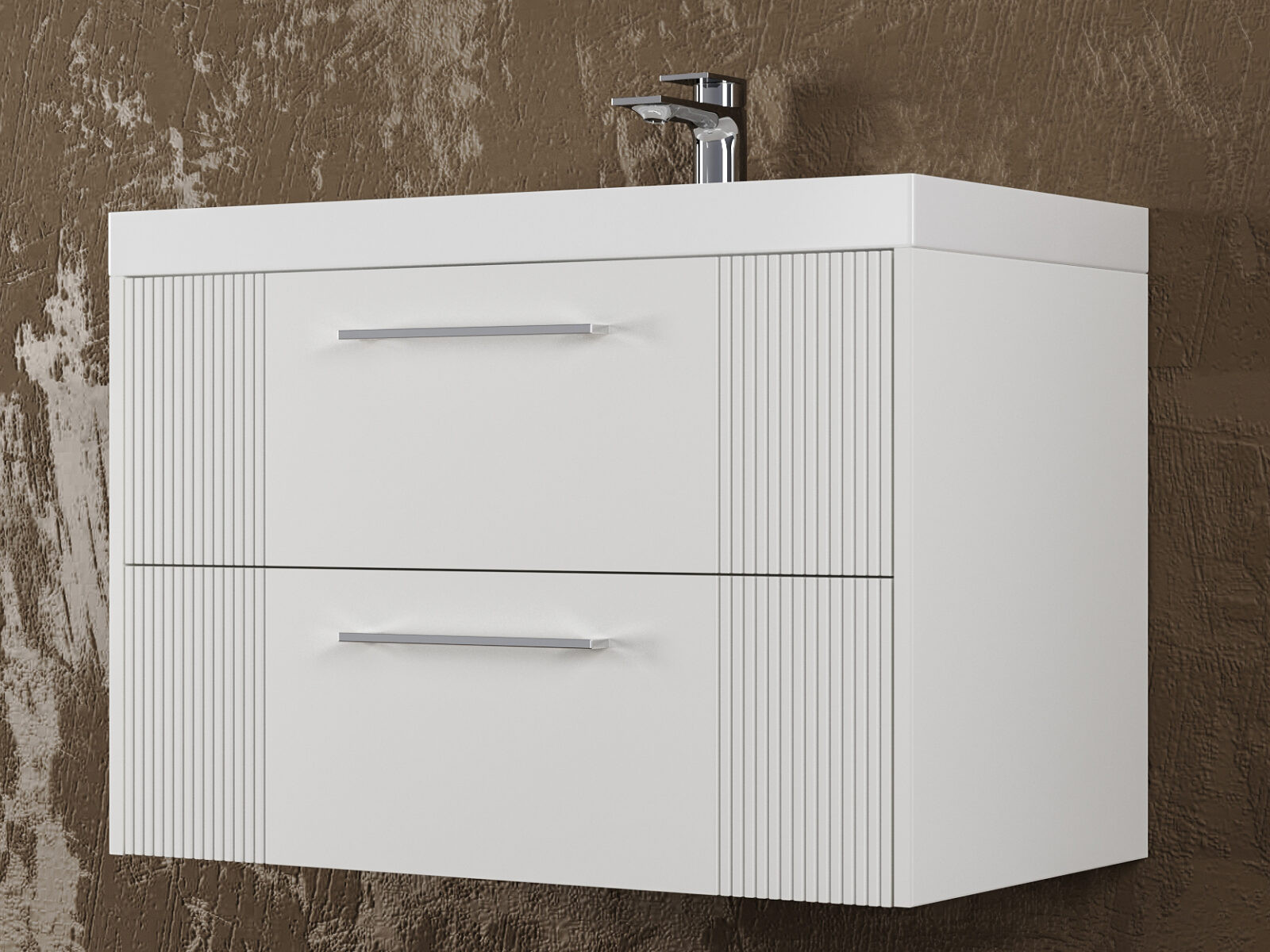 - Тумба Альба 80 подвесная 2 ящика раковина Комфорт 80 суфле