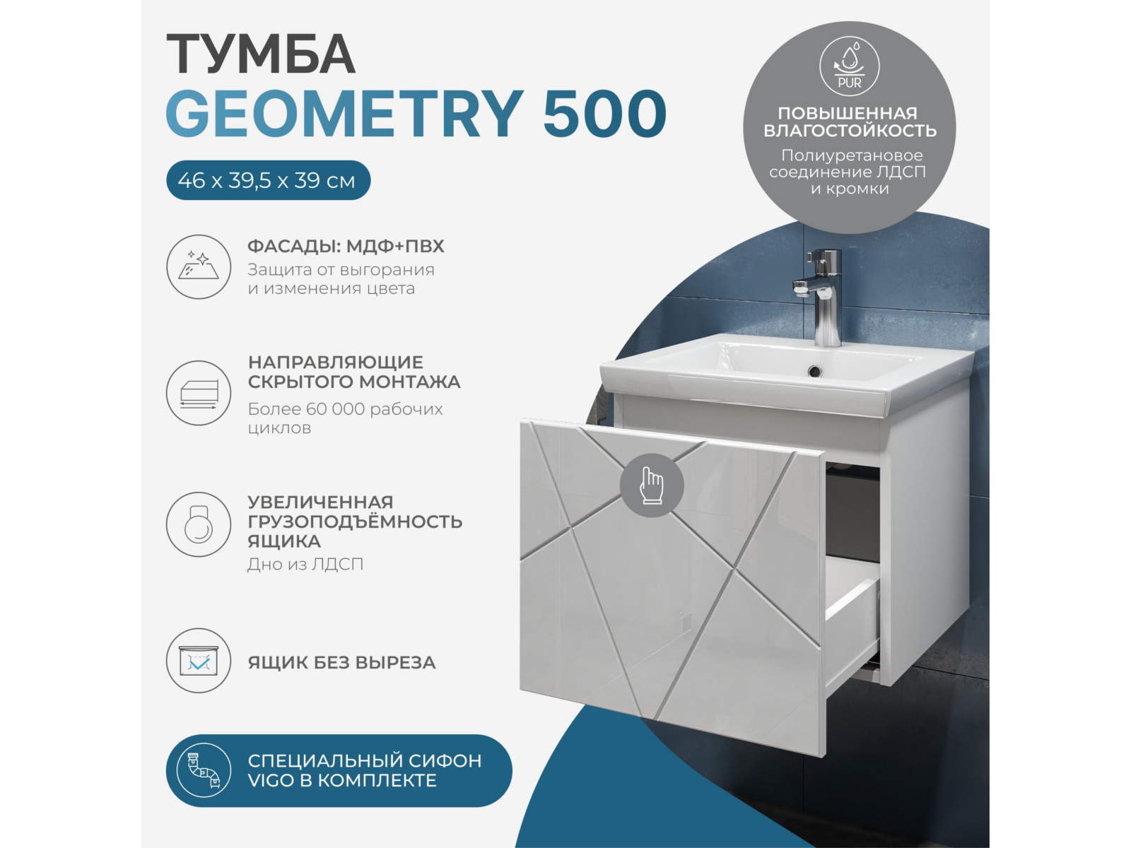Размер тумбы с раковиной (ШxГxВ): 500x400x420 мм