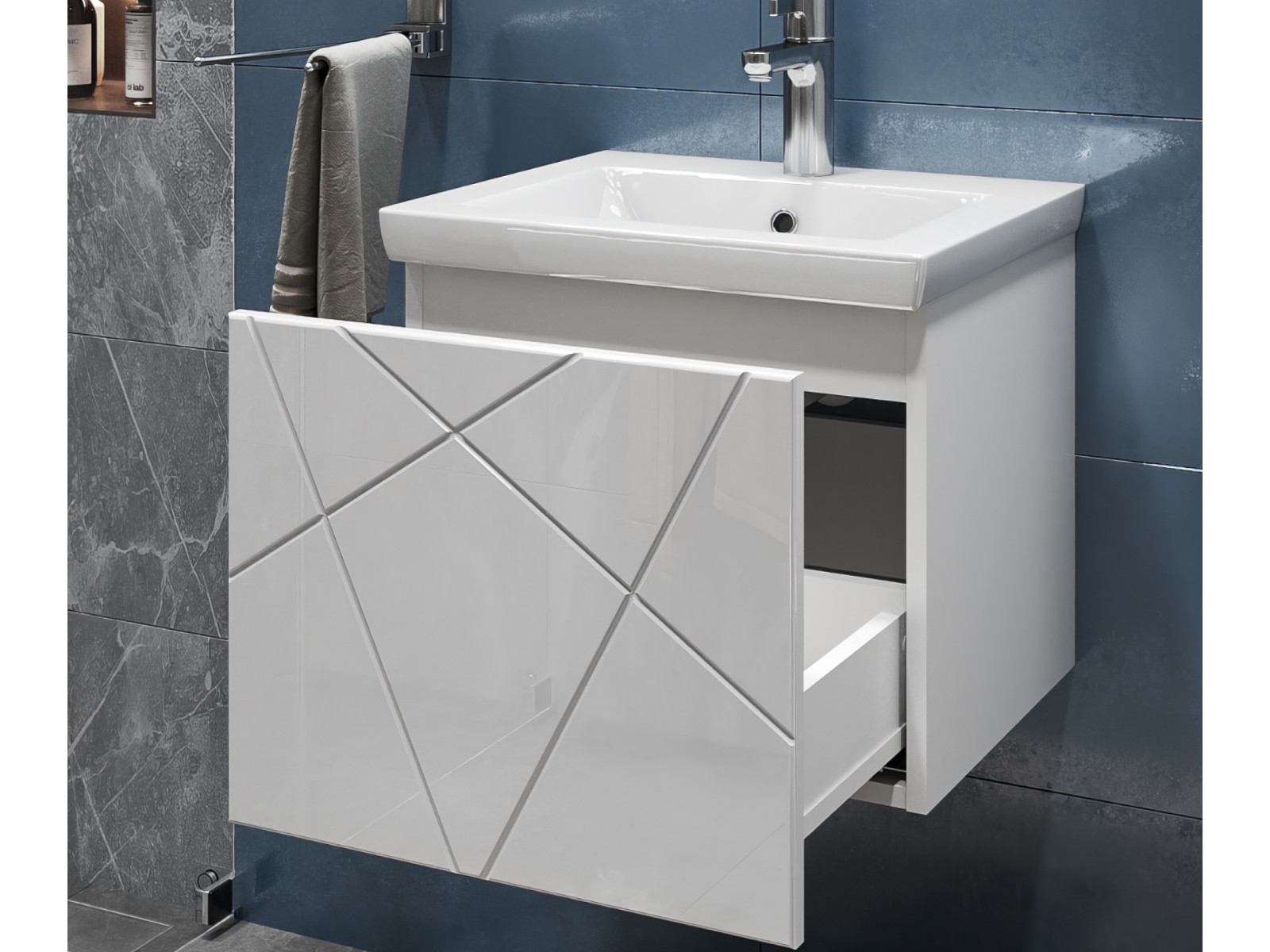 Оснащение: 1 выдвижной ящик, направляющие скрытого монтажа, открывание нажатием "push-to-open", 2 навеса, 1 сифон