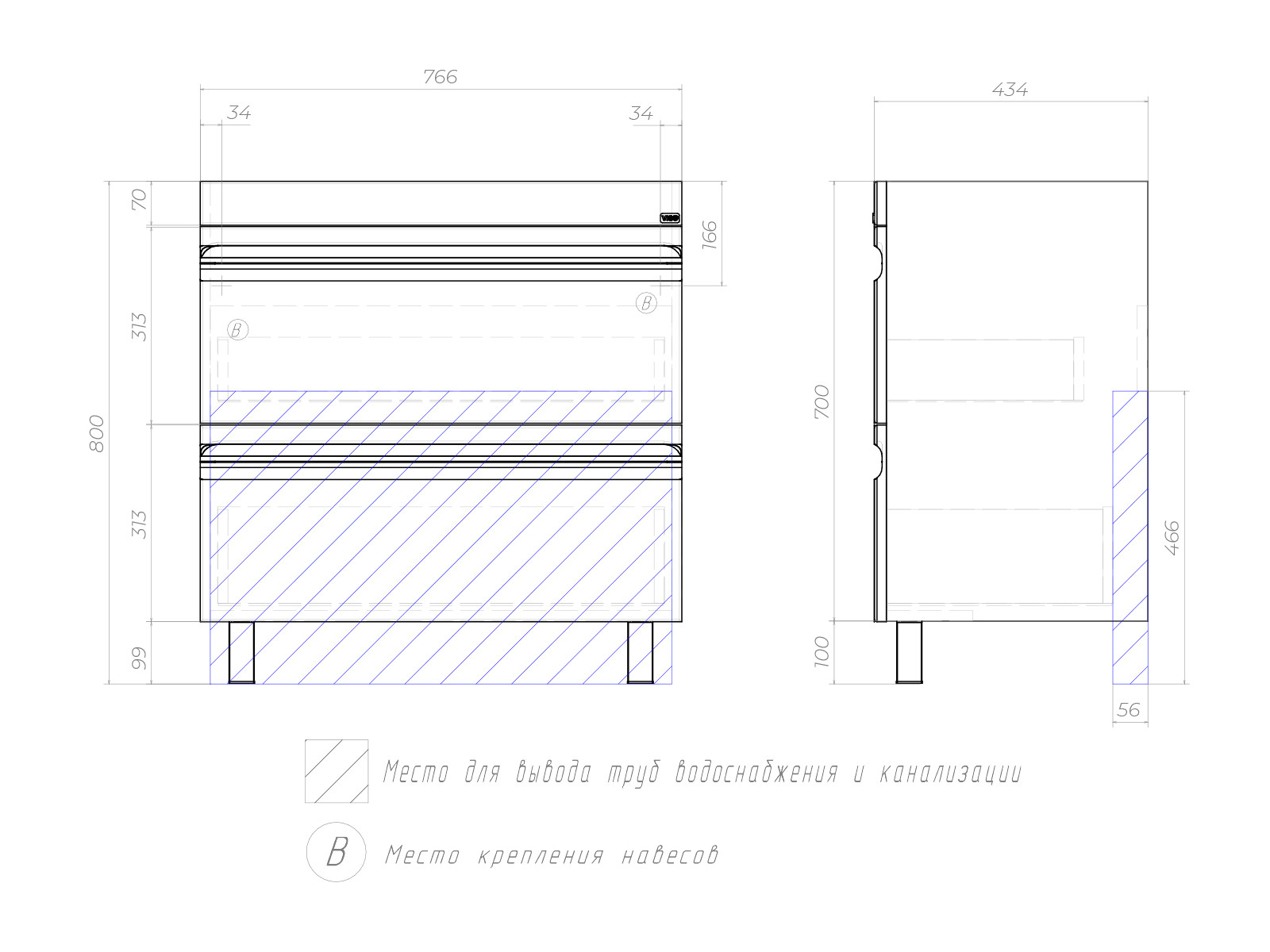 - Тумба под раковину Holly 800-0-2 (Фостер) напольная/подвесная