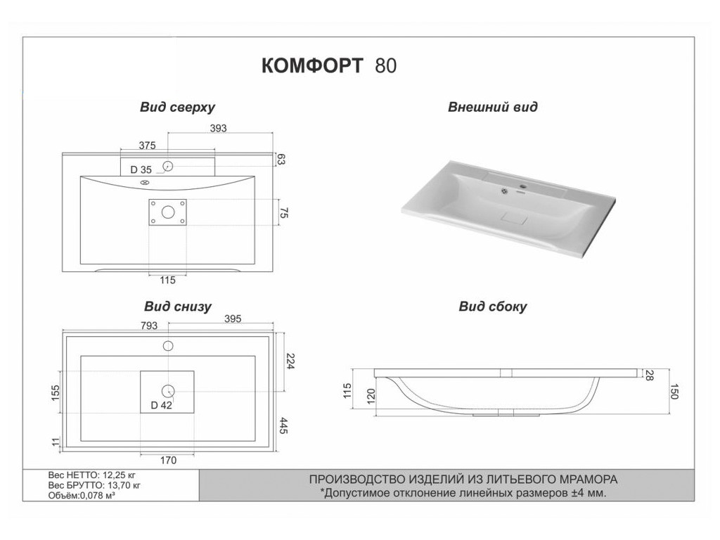 - Тумба Куба Риф 80 напольная 3 двери белый раковина Комфорт 80
