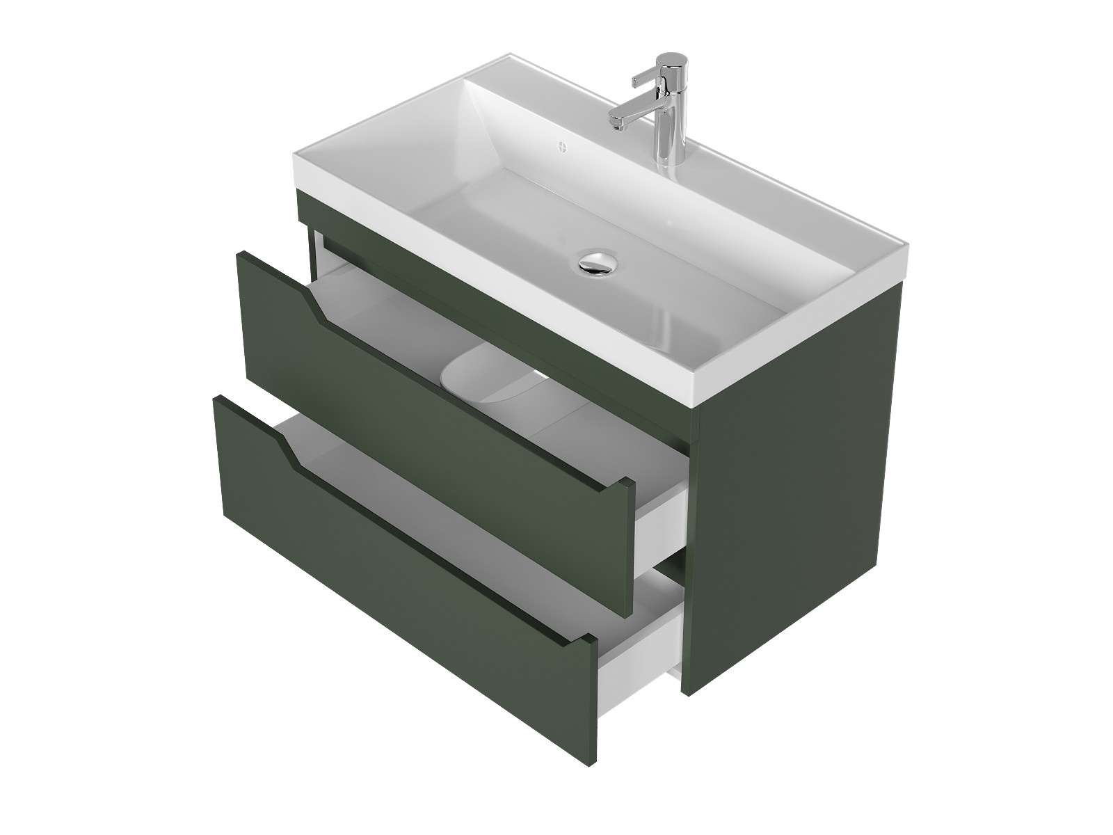 - Тумба Леон 80 подвесная 2 ящика раковина Слим 80 форест