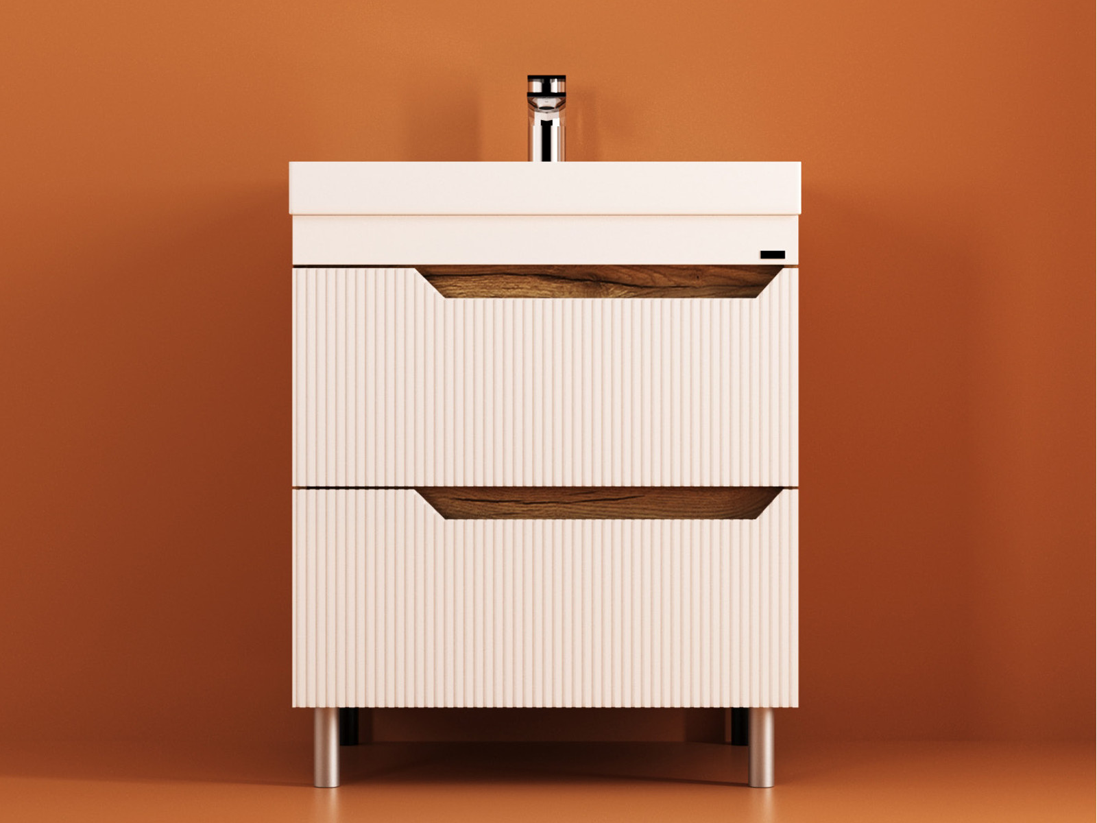 - Тумба Леон Риф 60 напольная 2 ящика раковина Океан 60 солярис/белый риф