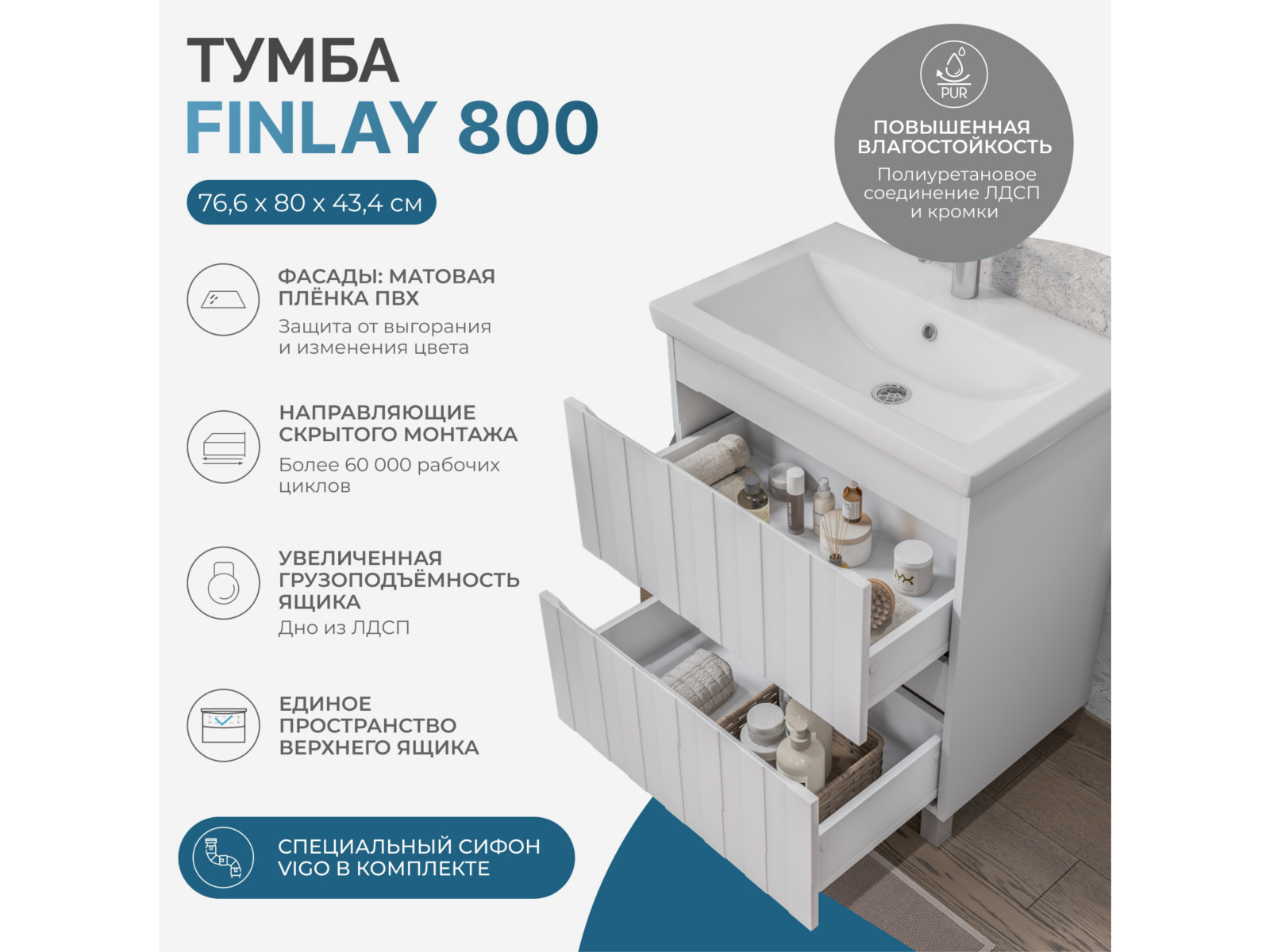 - Тумба под раковину Finlay 800-0-2 (Como)