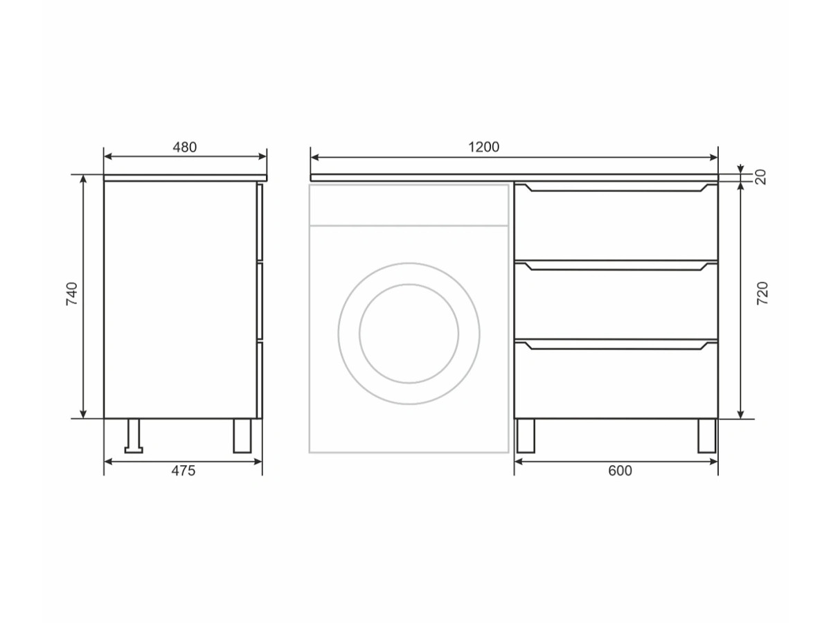 - Тумба под стиральную машину Uperwood Tanos 60 см, напольная, 3 ящика, белая