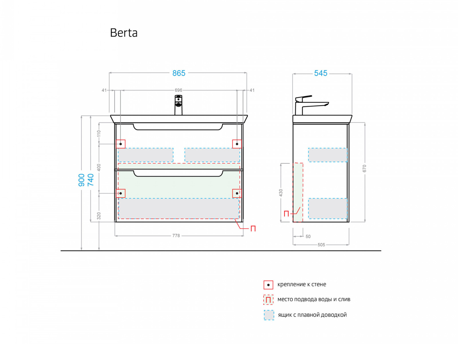 - Механизм ящиков: С доводчиком (плавное закрывание)