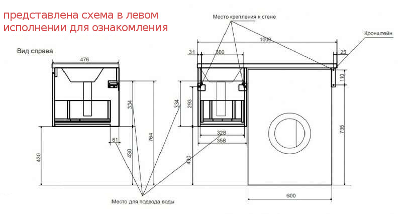 - Тумба с раковиной Dallas Luxe 1000 навесная 1 ящик правая