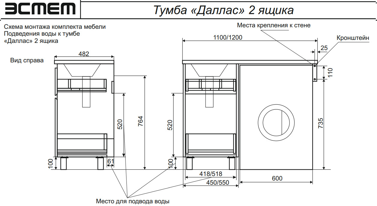 - Тумба с раковиной Dallas Luxe 1150 напольная 2 ящика левая