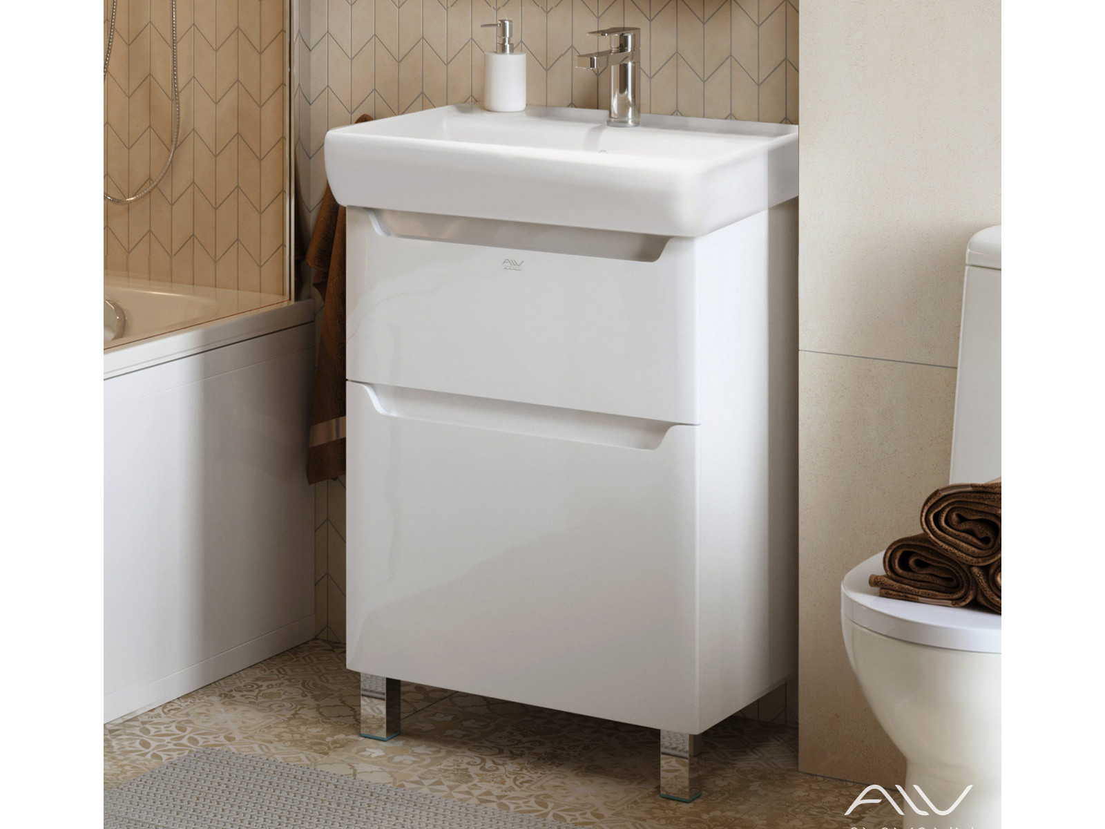 - Тумба с раковиной Lana 60 белая Умывальник Q 60