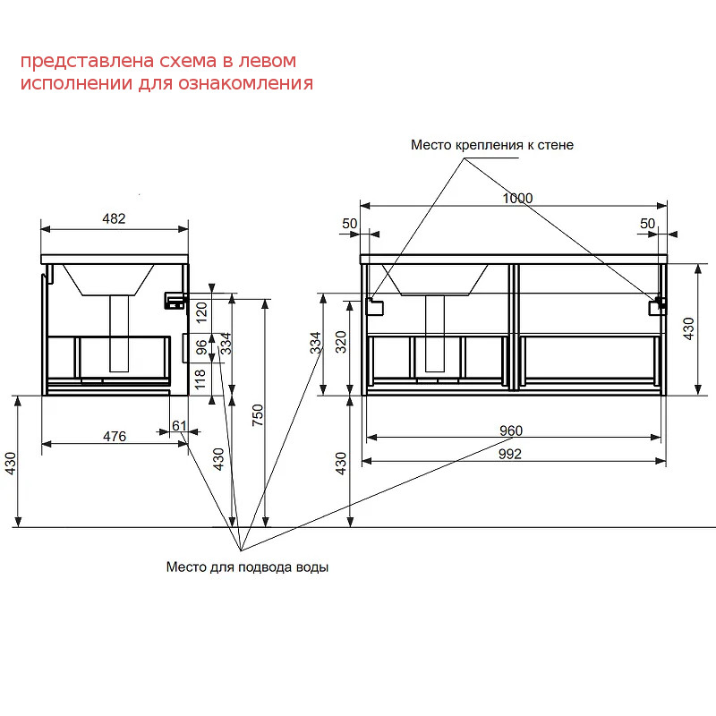 - Тумба с раковиной справа Dallas Luxe 1000 навесная 1 длинный ящик