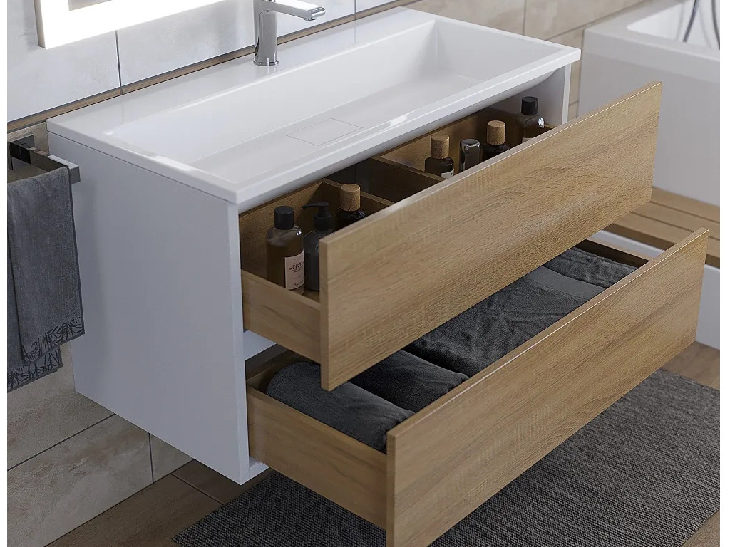 Тумба с раковиной Uperwood Barsa 90 см раковина белая-тумба белая/дуб сонома