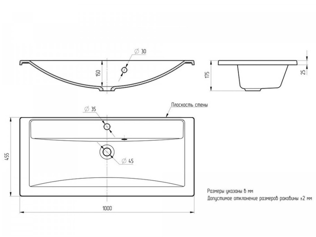 - Тумба с раковиной Uperwood Foster черная 100 см