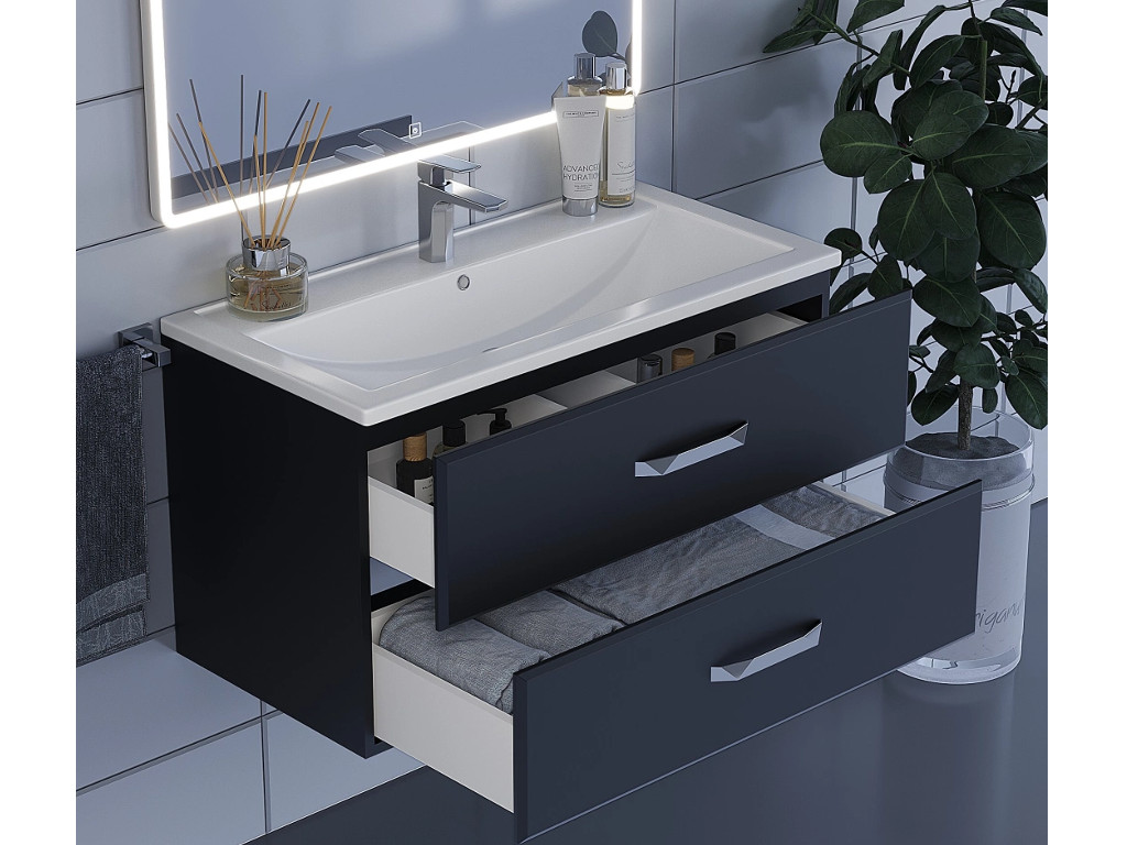 - Тумба с раковиной Uperwood Foster черная 90 см