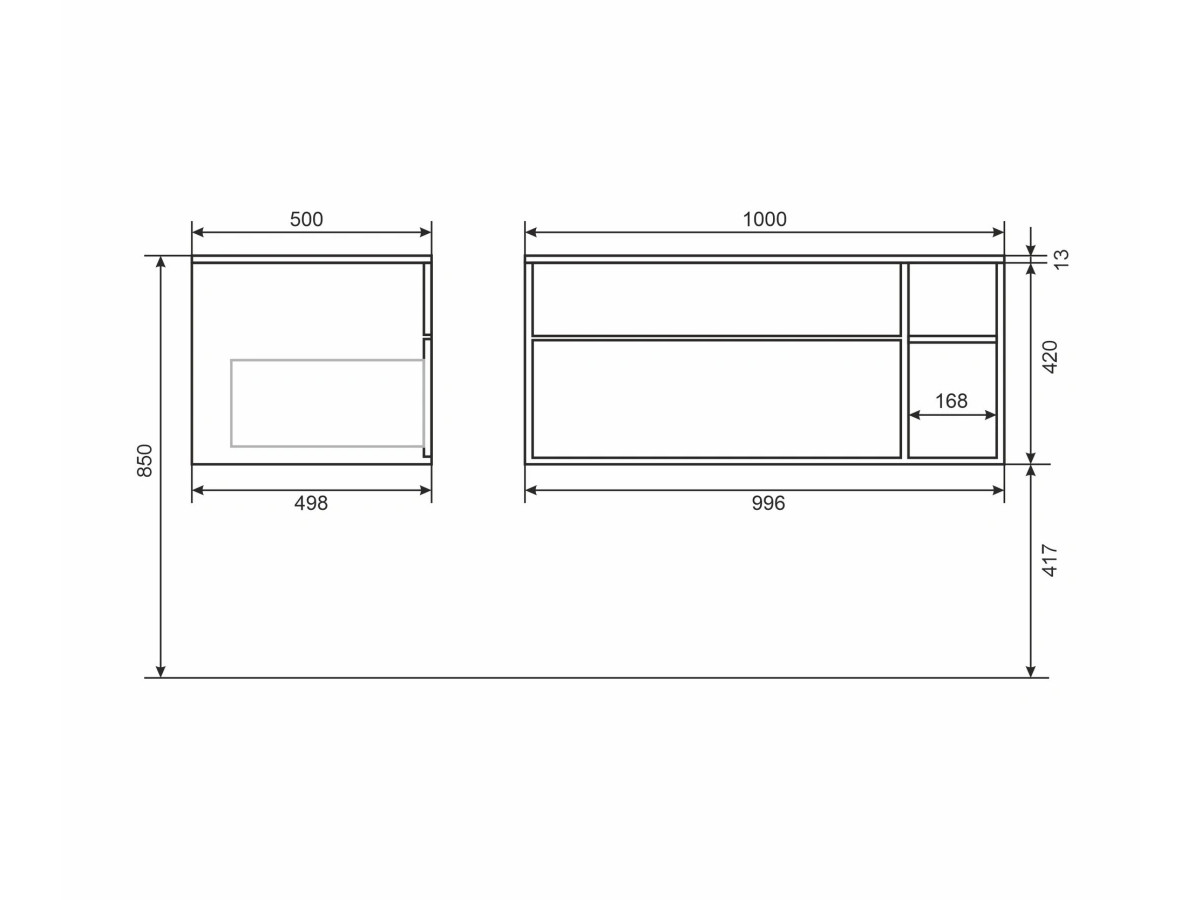 - Выдвижные ящики изготовлены из влагостойкой ЛДСП.