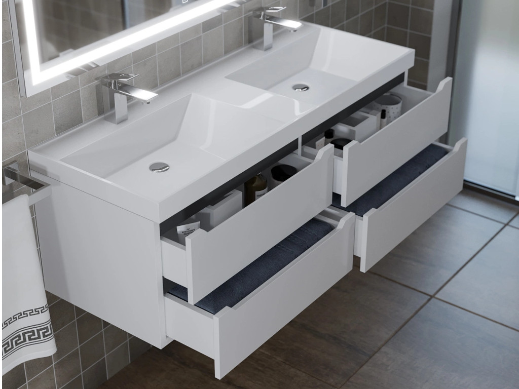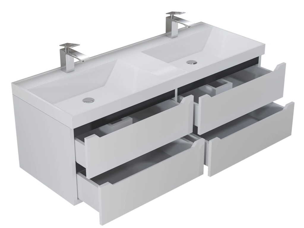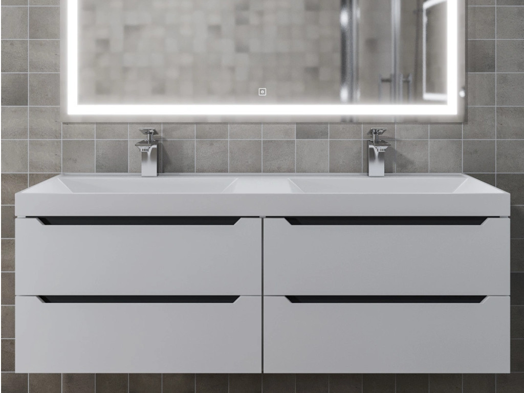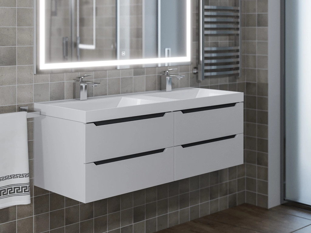 - Тумба с раковиной Uperwood Tanos 120 см подвесная двойная белая/графит