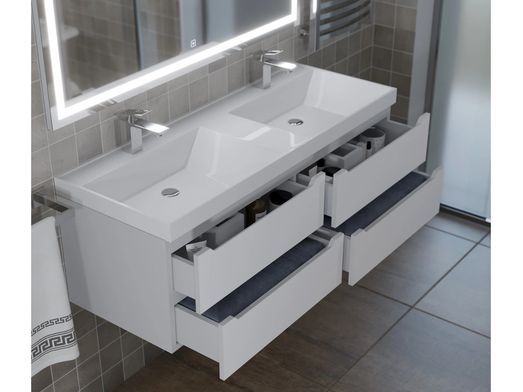 - Тумба с раковиной Uperwood Tanos 120 см подвесная двойная белый
