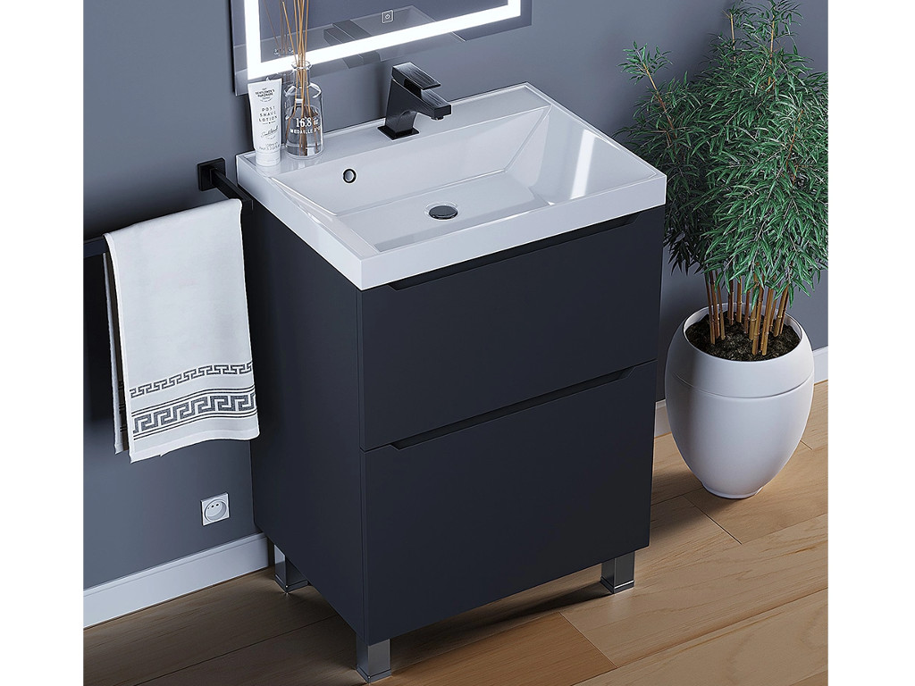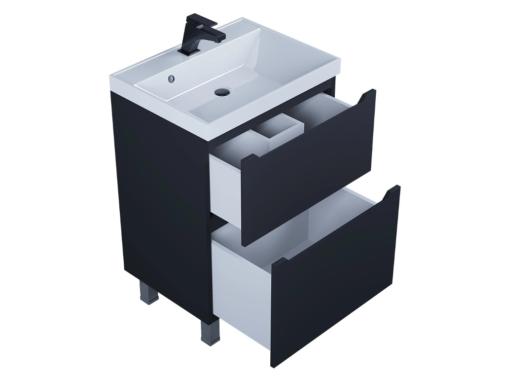 Тумба с раковиной Uperwood Tanos 2 ящика напольная 60 см черная