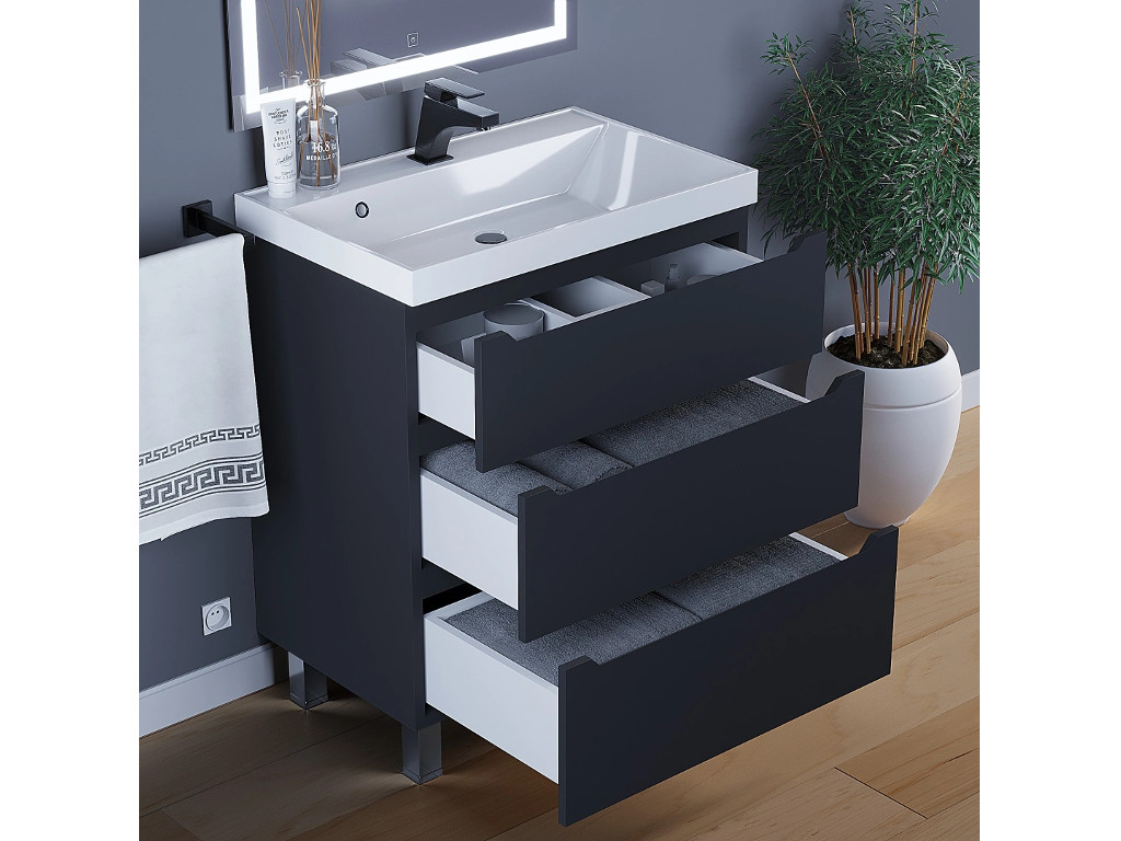- Тумба с раковиной Uperwood Tanos 3 ящика напольная 70 см черная
