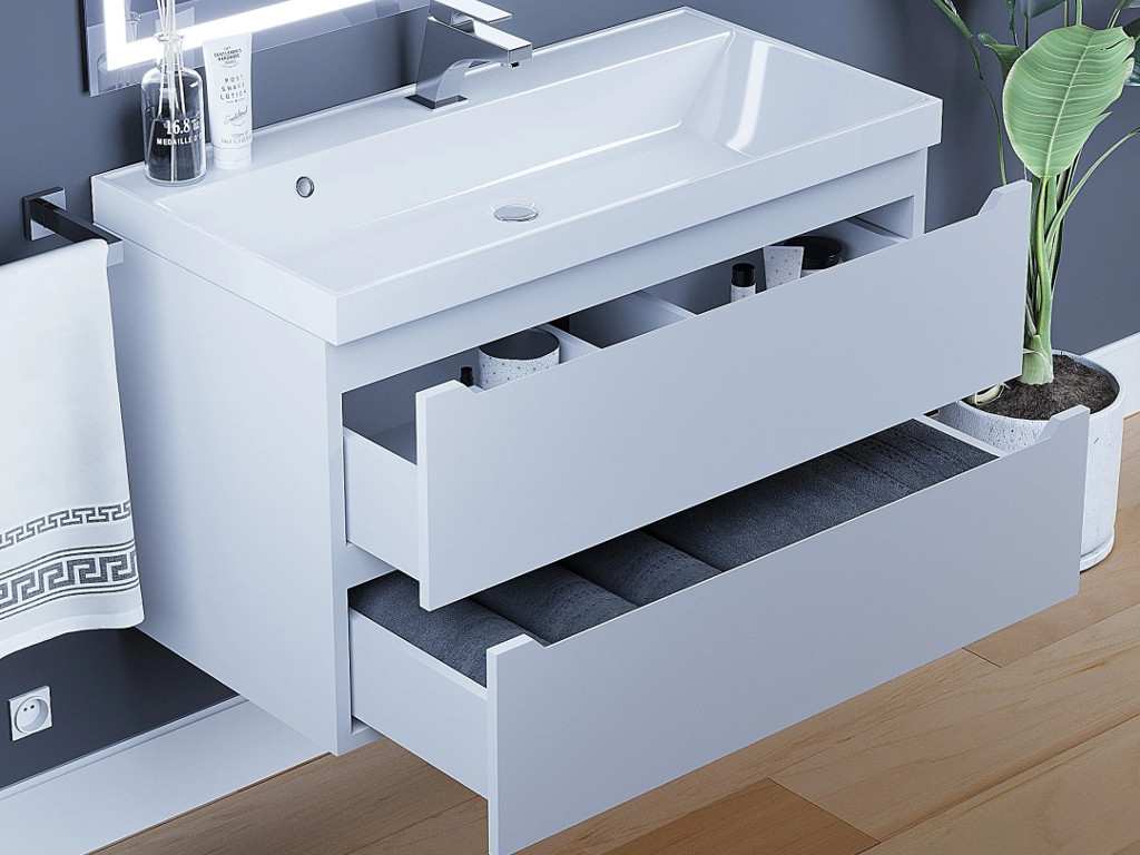 Тумба с раковиной Uperwood Tanos матовая белая 90 см