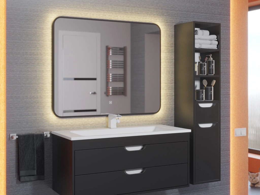 - Зеркало Uperwood Modul черное теплая подсветка 100х80 см