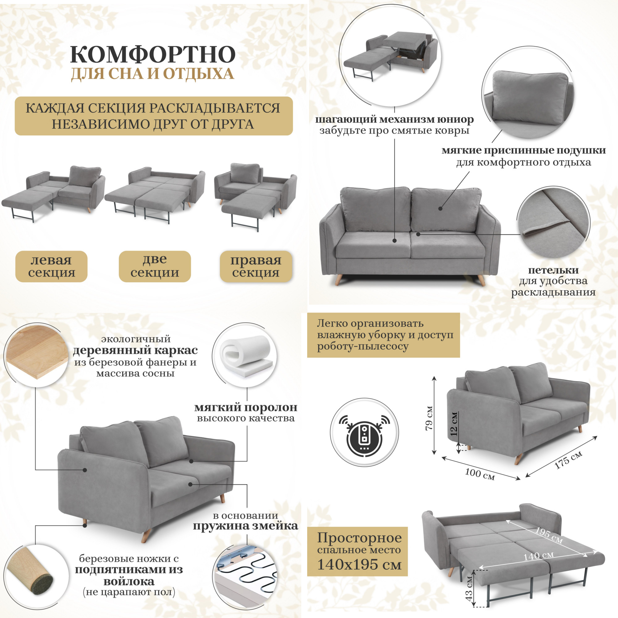 - Спальное место: 1400х1950мм