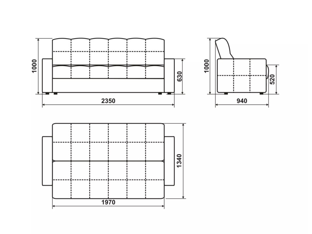 Размеры дивана (мм): 2350*940*1000