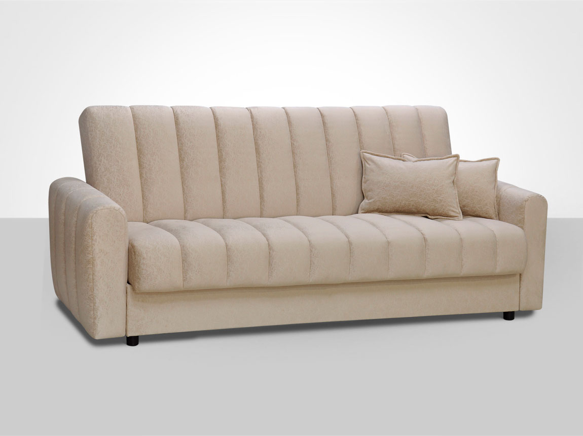 Задняя спинка дивана выполнена в основной обивочной ткани, поэтому его можно поставить даже в центре комнаты.