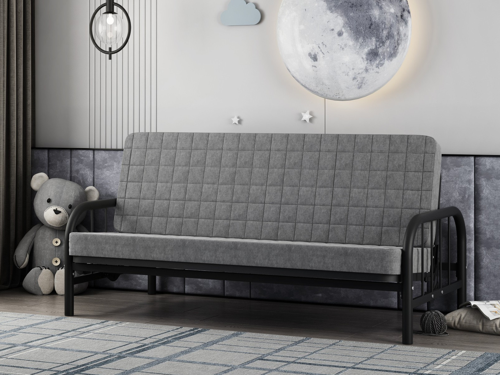 - Диван-кровать Мадлен 4 Черный-Серый
