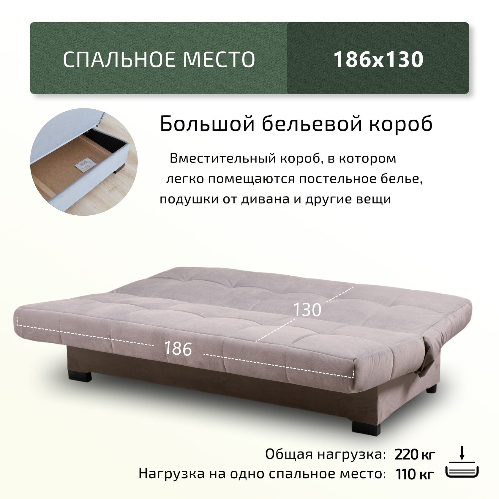 Спальное место, мм: 1300х1860 мм