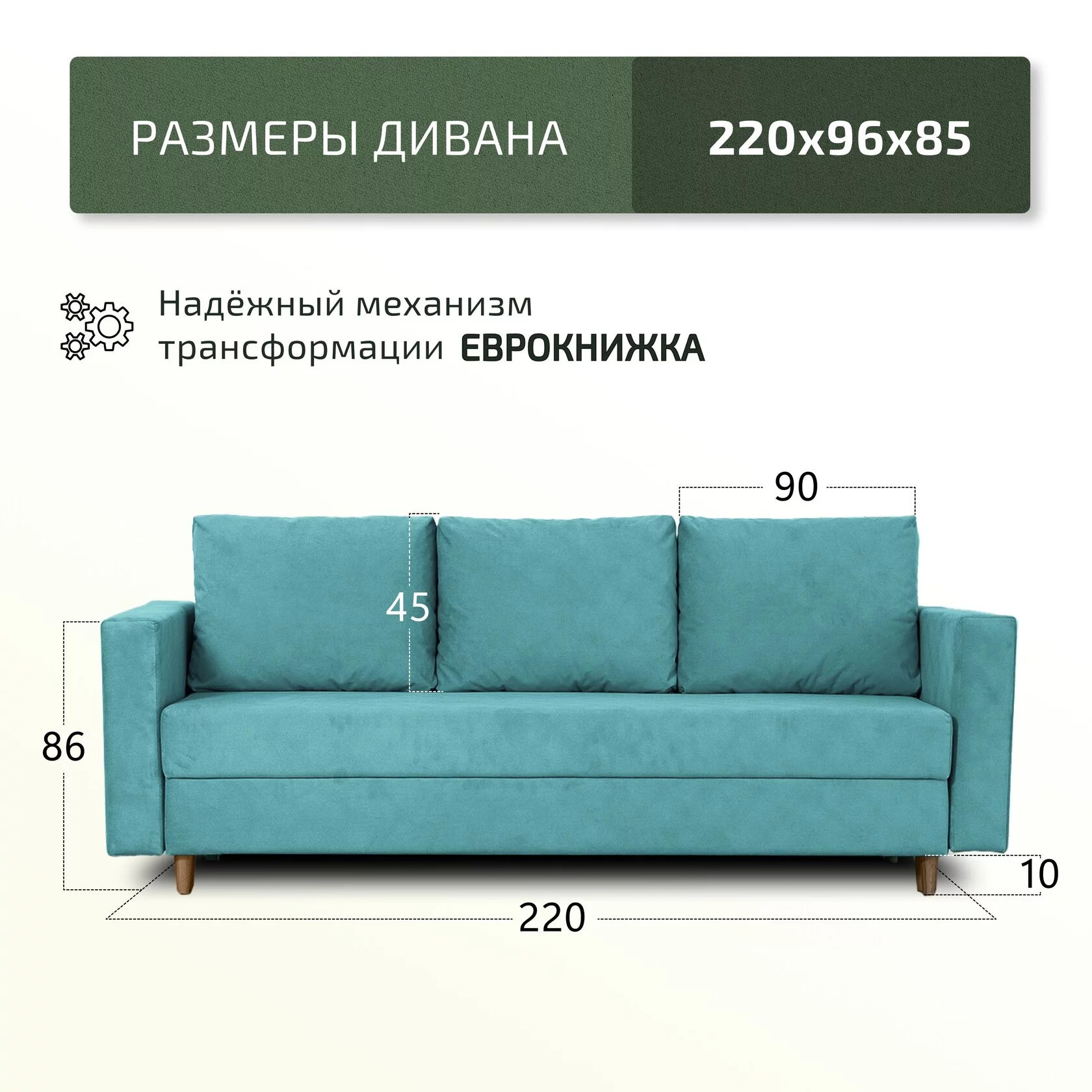 Размер ШxГxВ: 2200x960x850 мм