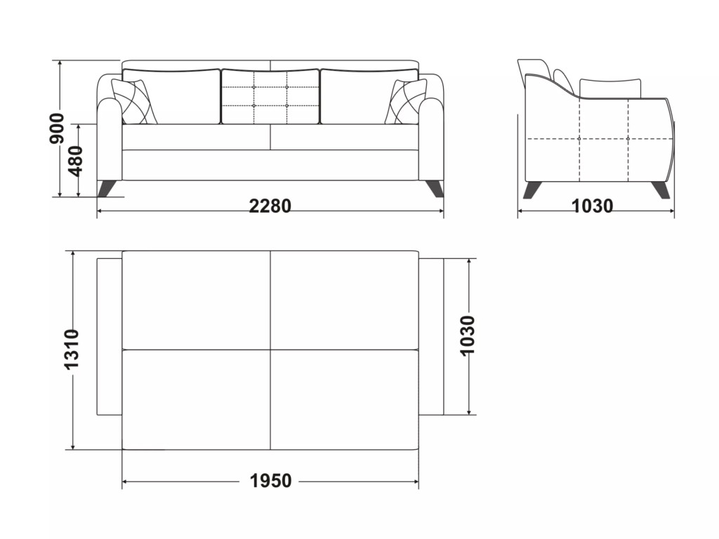 Размеры дивана (мм): 2280*1030*900