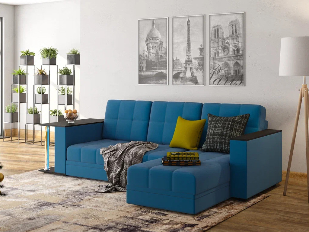 - Диван угловой Атлант со столиком велюр Neo 27 сапфир синий