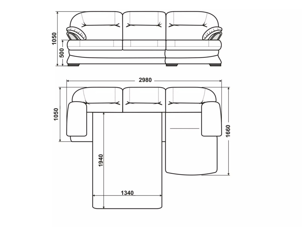 Размеры дивана (мм): 1660*2980*1050